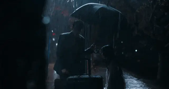 雨夜小巷,女學生看到一個女人淋著雨走路。