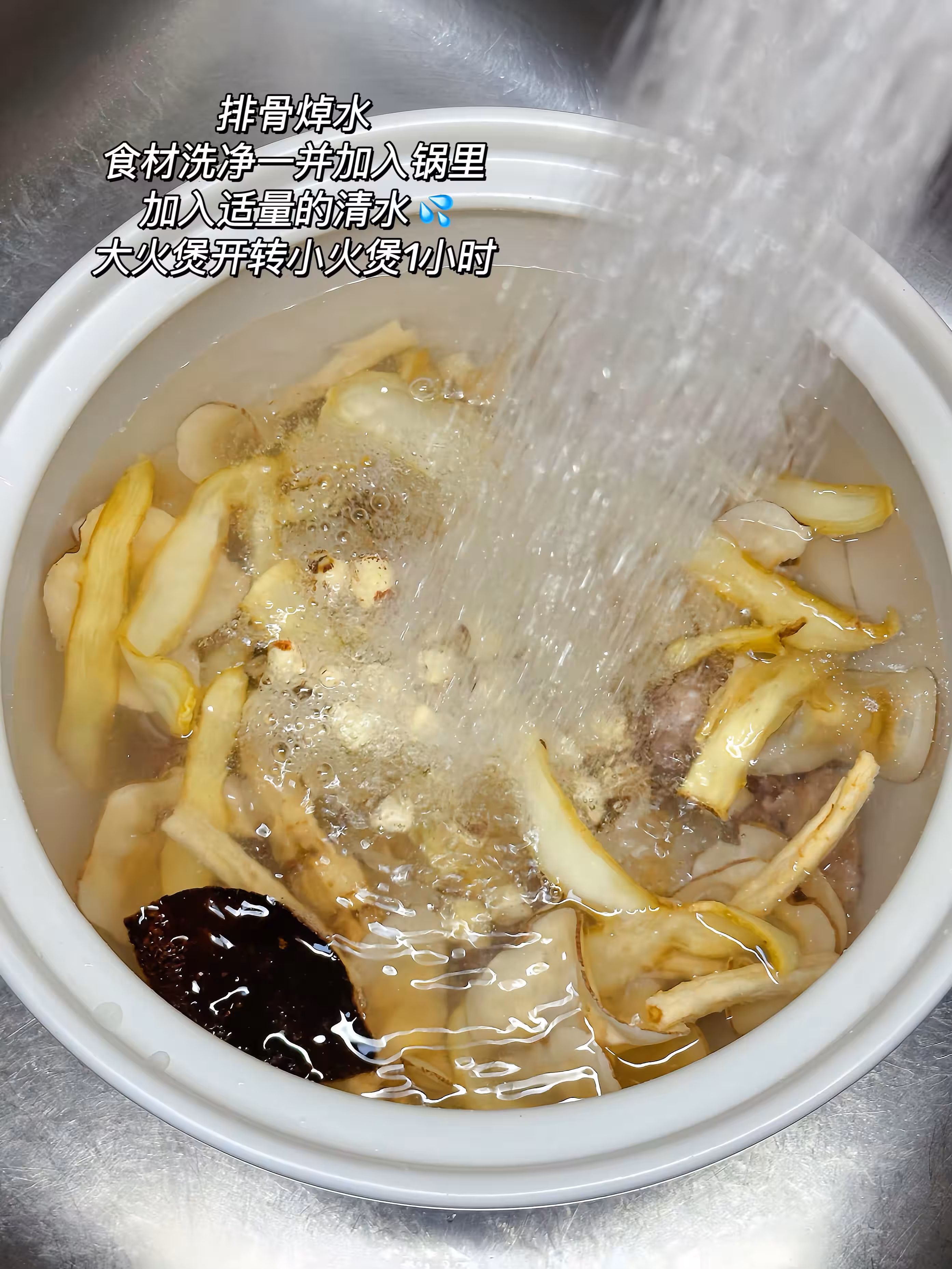 排骨焯水,所有食材洗凈一併放入湯鍋里