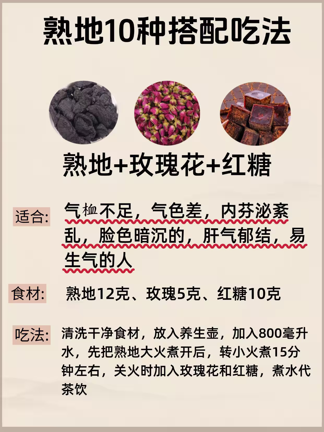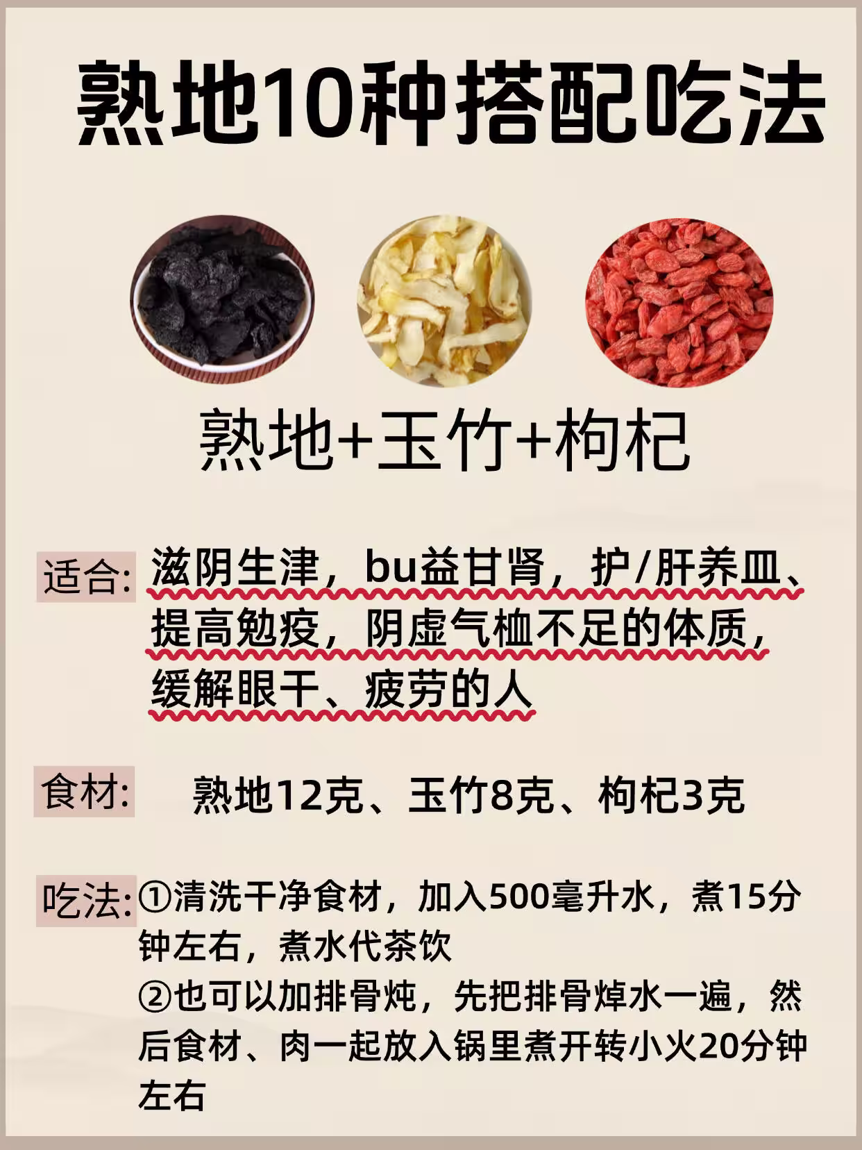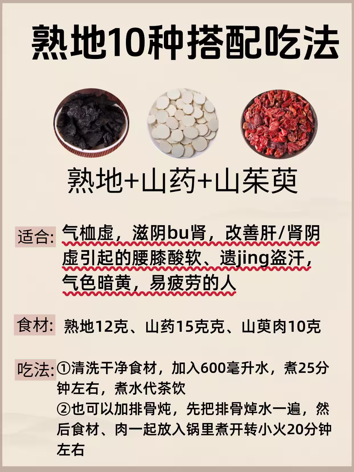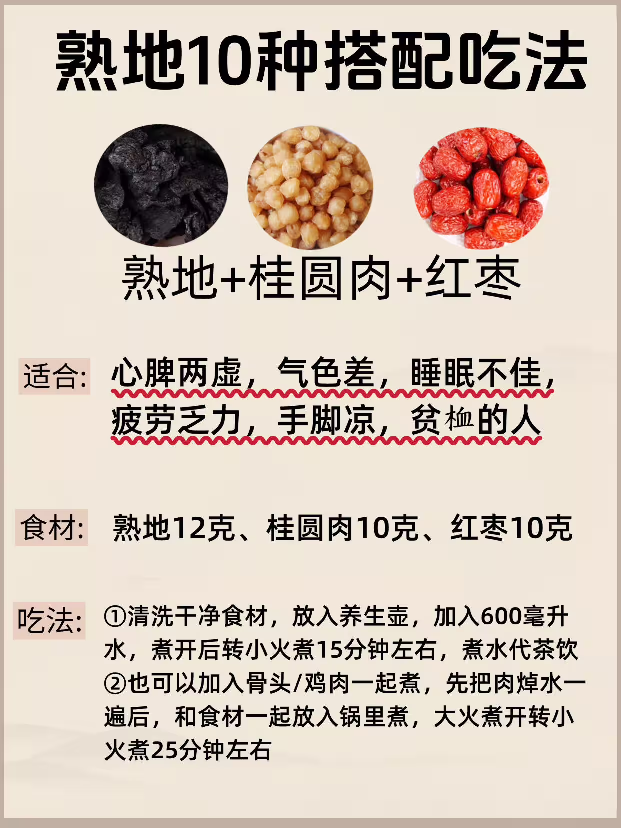 ✅分享熟地的10種寶藏搭配吃法(具體作用如上圖,建議的用量是1人份,調養一周喝兩到三次即可)