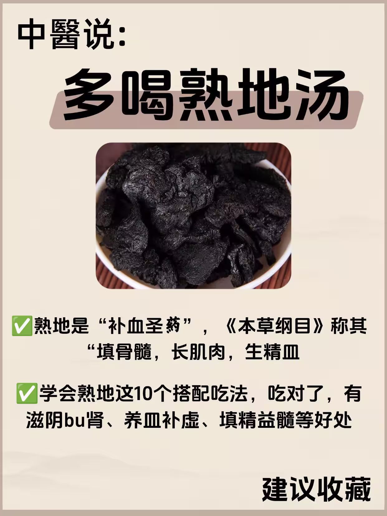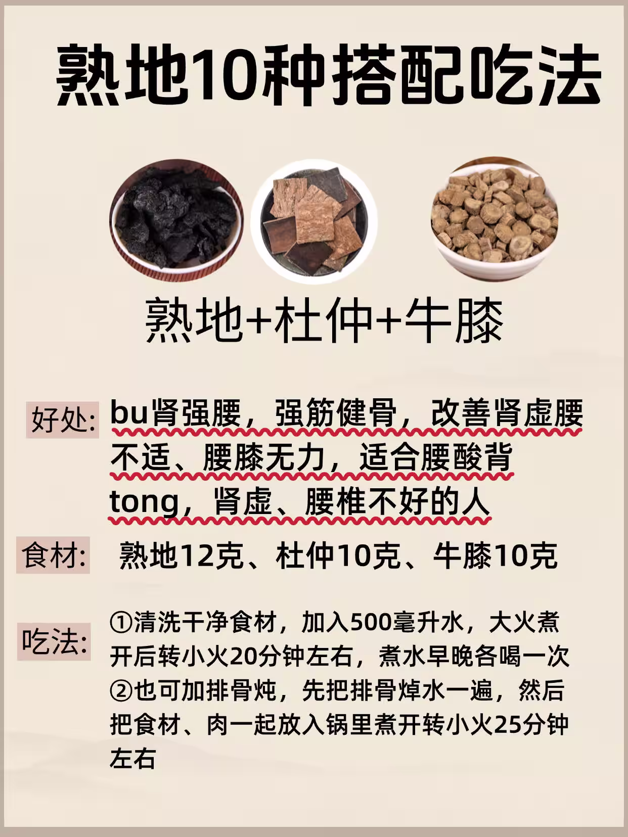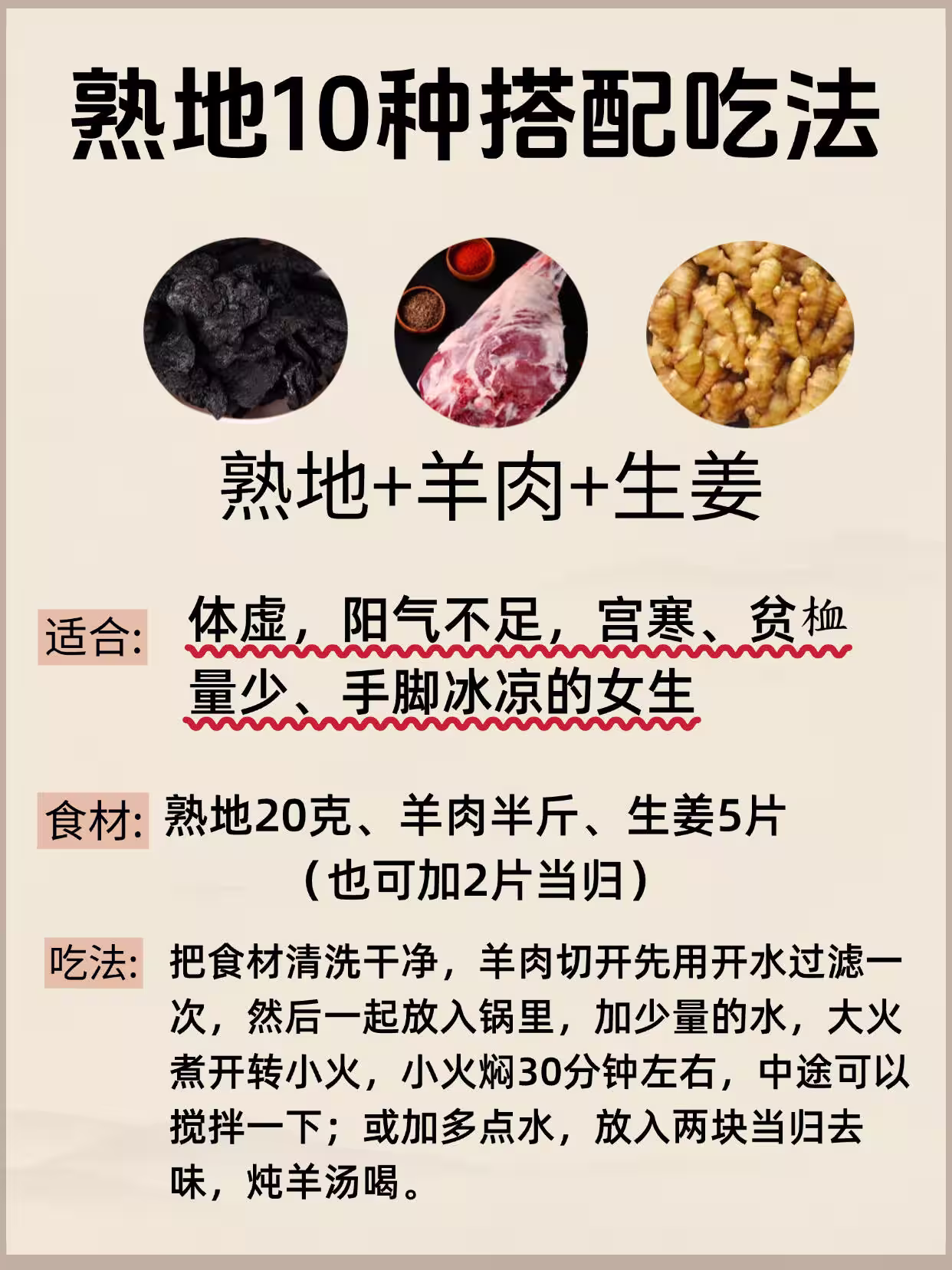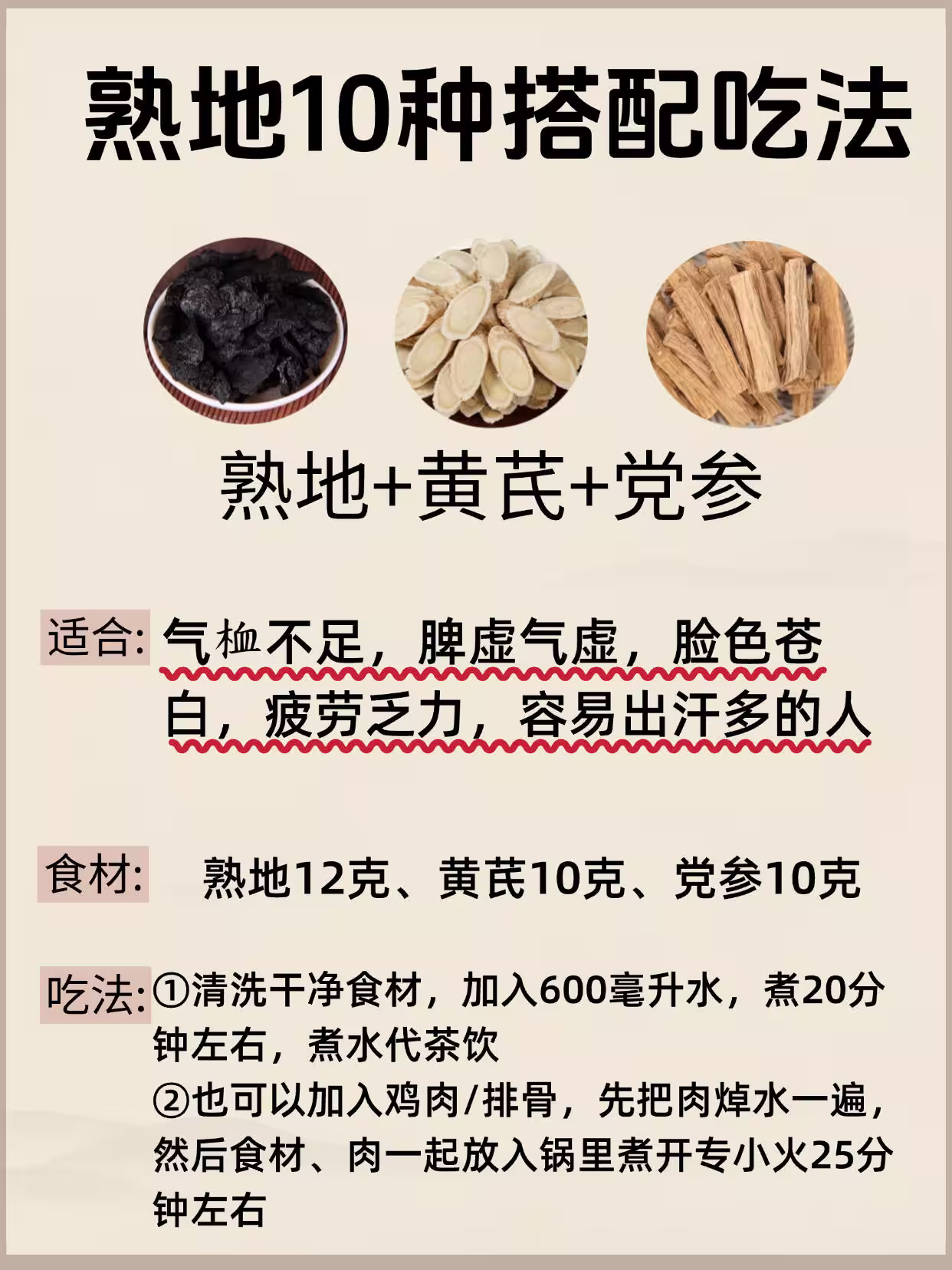 ✅分享熟地的10種寶藏搭配吃法(具體作用如上圖,建議的用量是1人份,調養一周喝兩到三次即可)