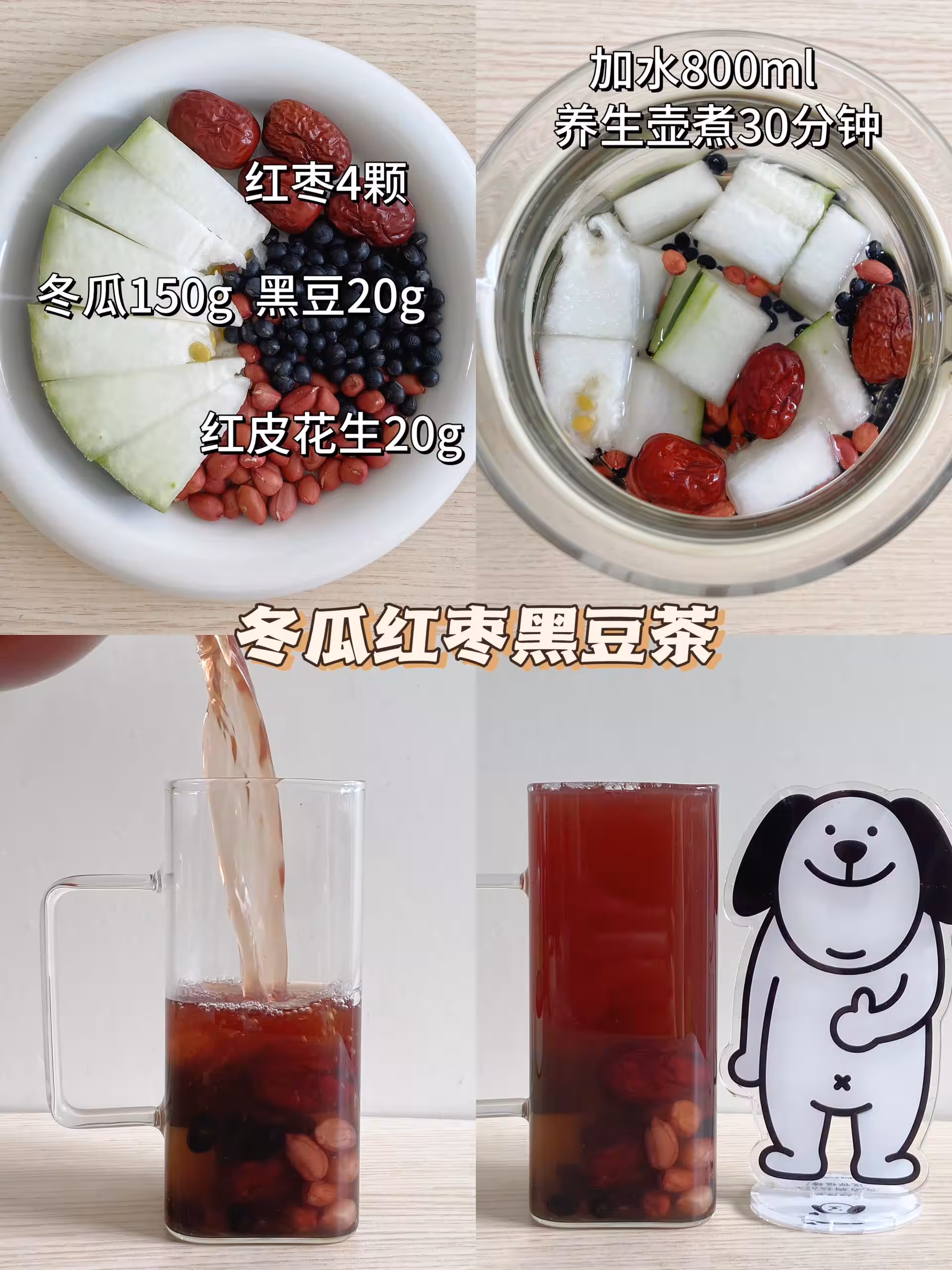 冬瓜150g+紅棗4顆+黑豆20g+紅皮花生20g+800ml水