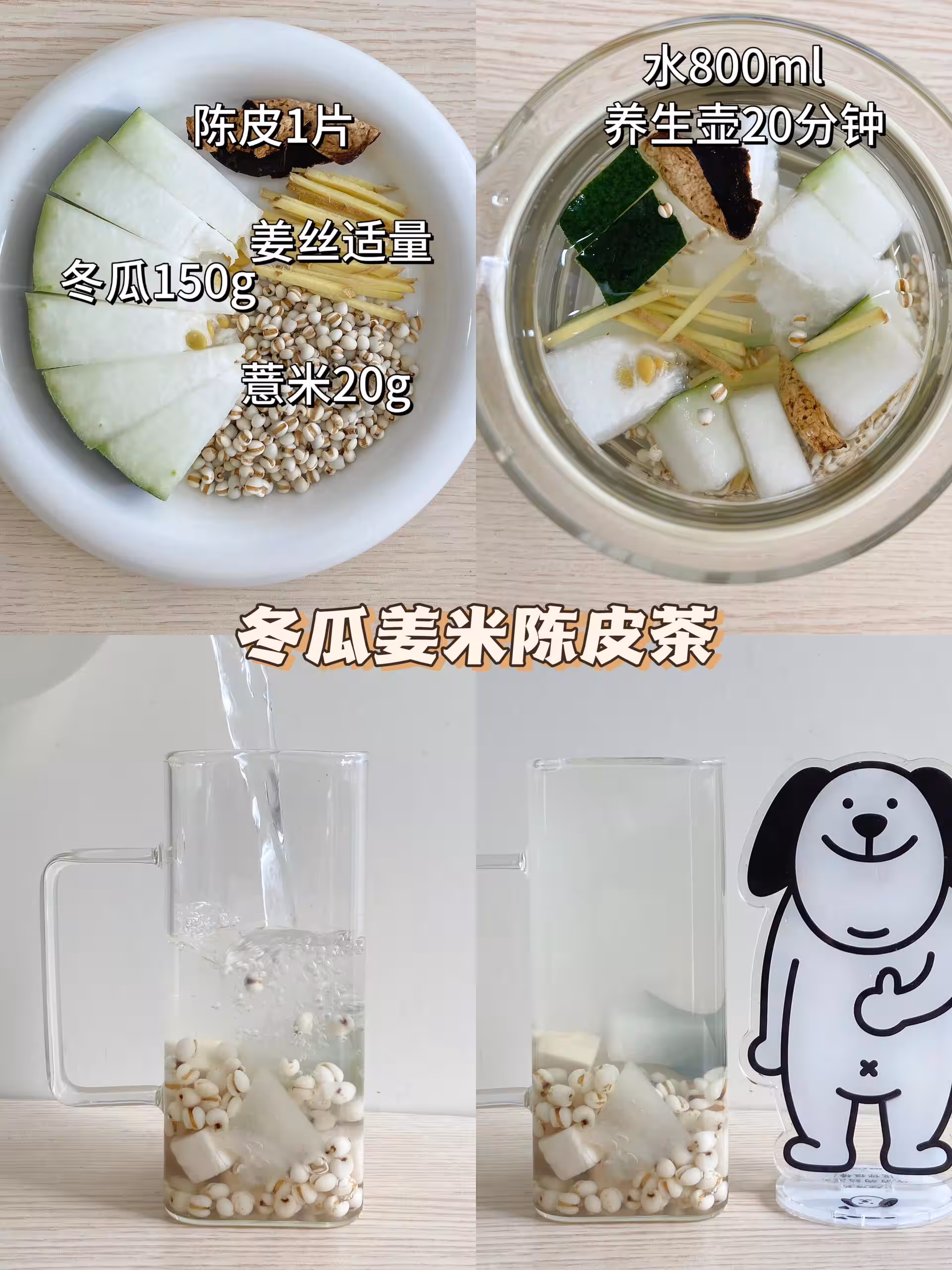 冬瓜150g+薑絲適量+陳皮1片+薏米20g+800ml水