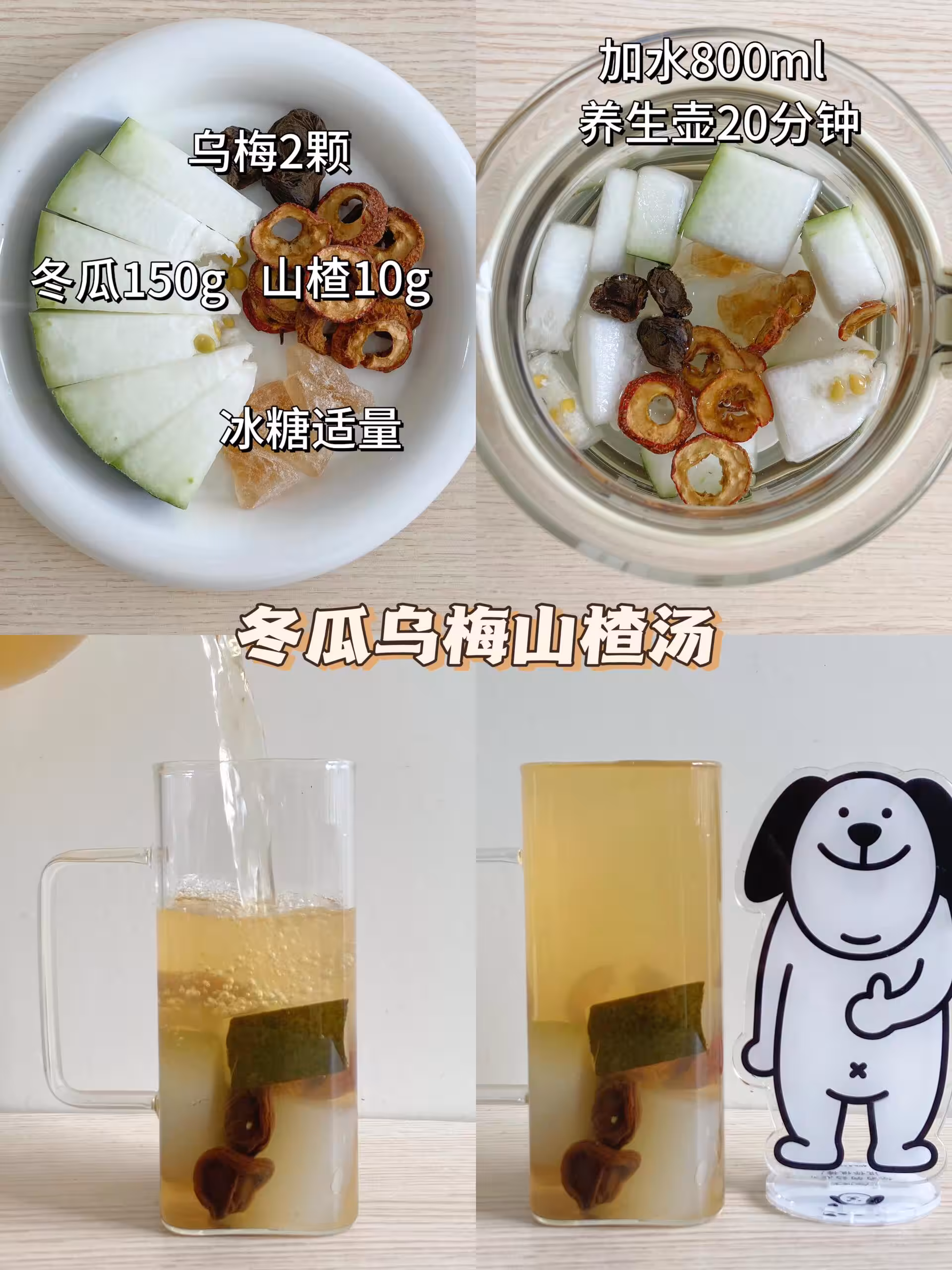 冬瓜150g+山楂10g+烏梅2顆+冰糖適量+800ml水