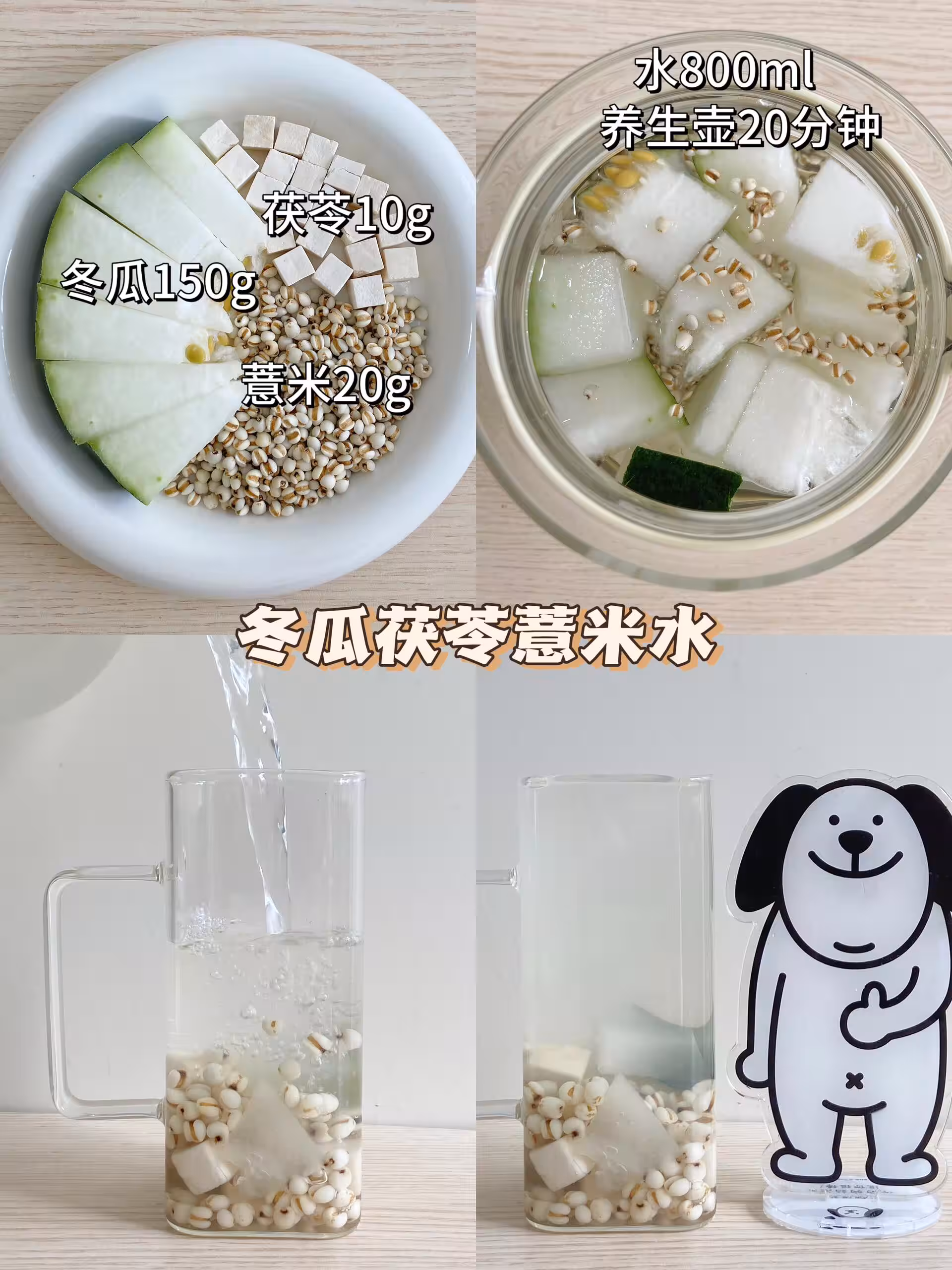 冬瓜150g+茯苓10g+薏米20g+800ml水