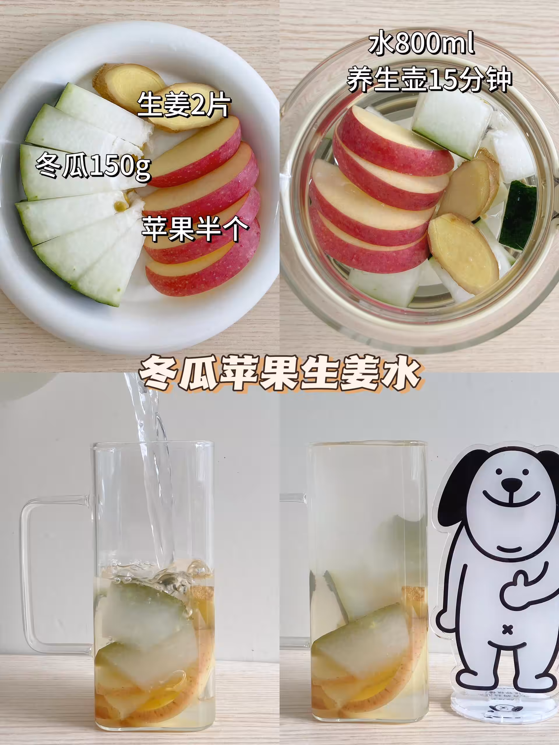 冬瓜150g+生薑2片+蘋果半個+800ml水