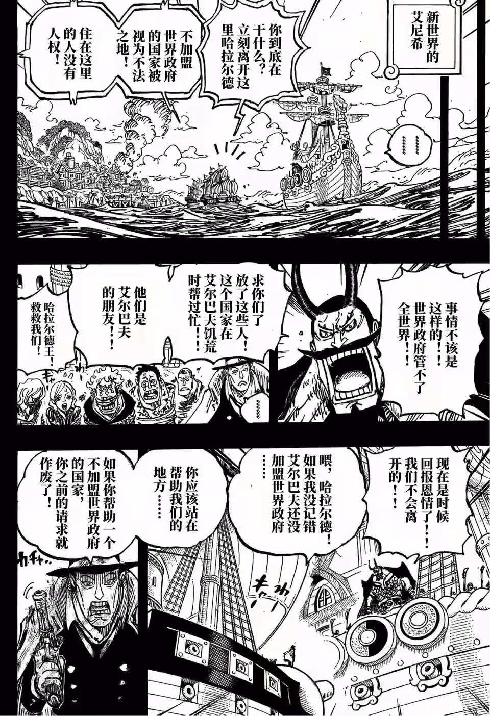 CP0馬上斥責哈拉爾德國王,你們不是世界政府的加盟國,馬上離開這裡,這個國家是巨人族的盟友,哈拉爾德國王不會眼睜睜看著CP0帶走這些人,CP0還威脅哈拉爾德國王。