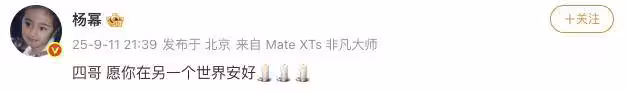 9月11日晚,@楊冪 發文悼念於朦朧。