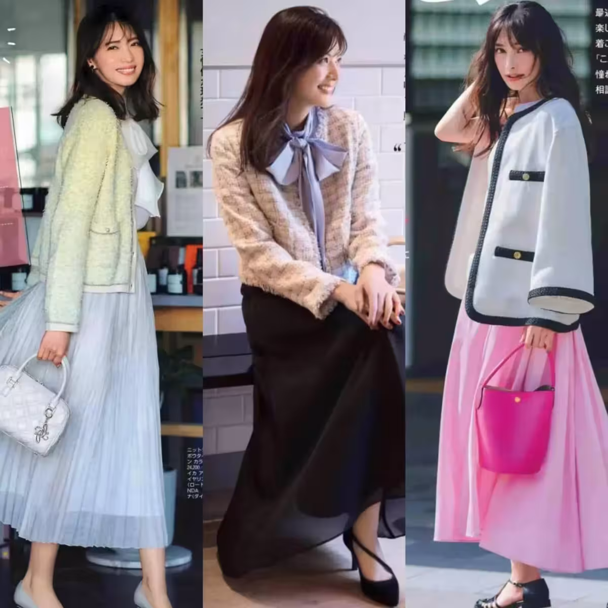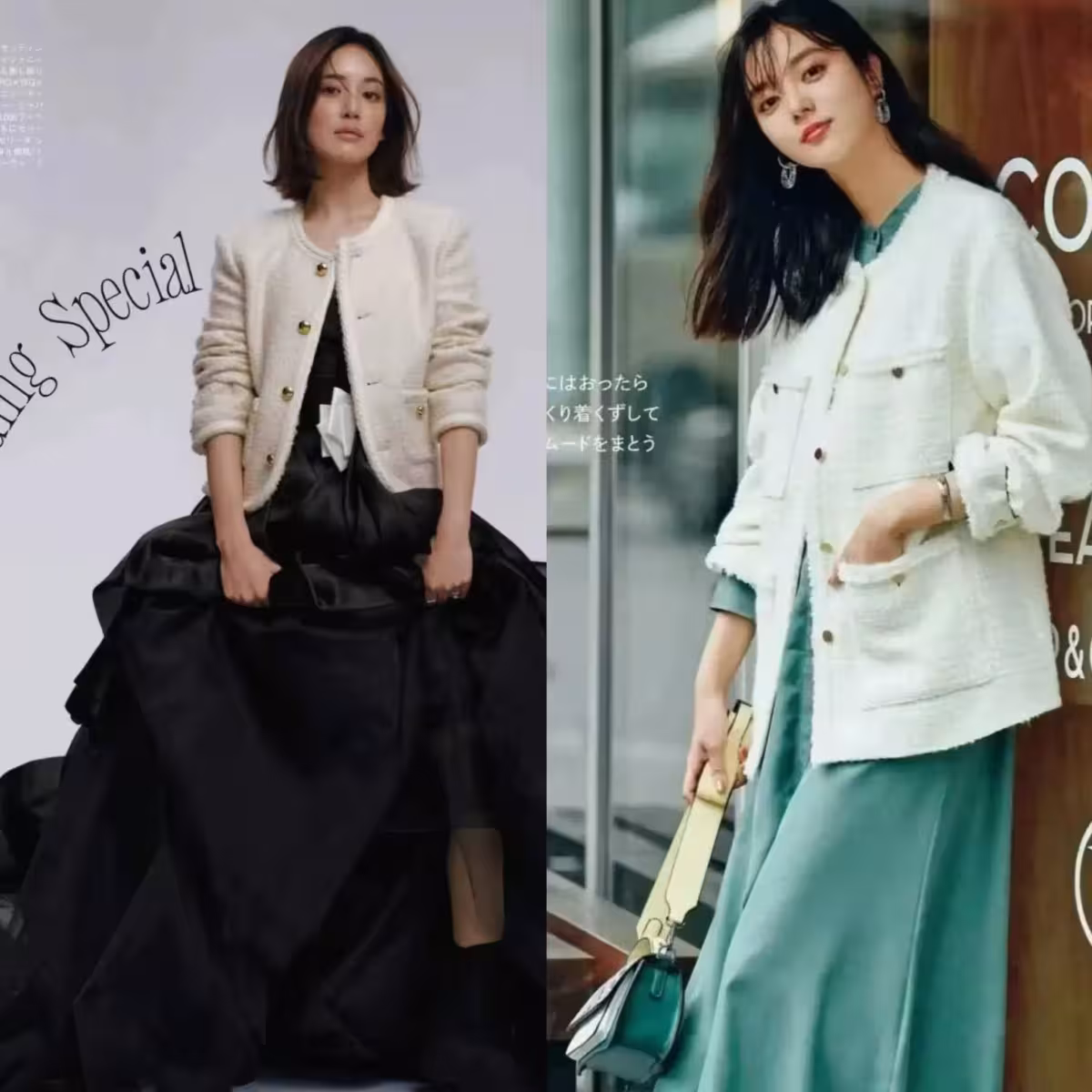 日常生活中,可以選擇一件色彩溫婉明媚的小香風外套,搭配溫柔浪漫的傘裙,帶著濃濃的書卷氣,安靜又輕盈,仿佛《故園風雨後》里走出來的牛津少女。