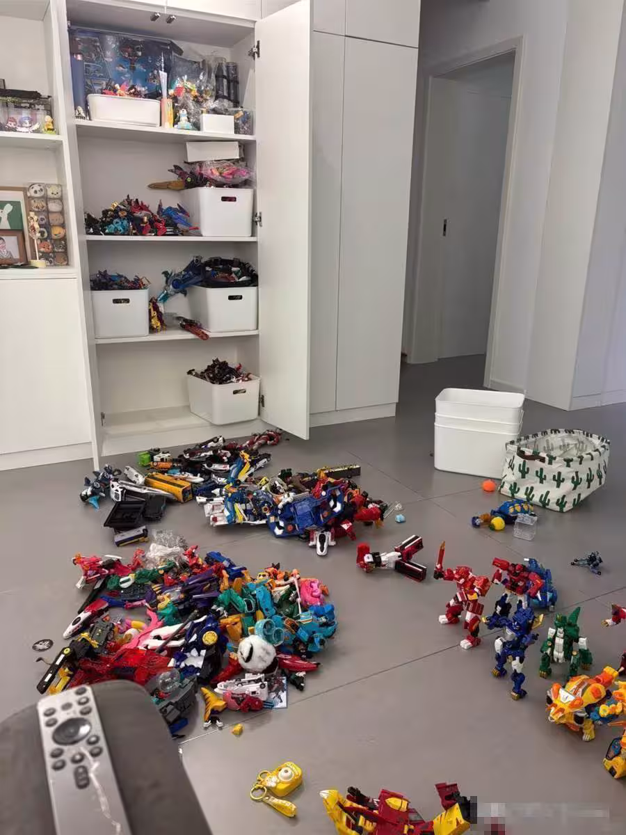 家中堆積了大量的玩具,不僅會占據家中空間,還會滋生大量的細菌,因此要和孩子商量好,將那些壞掉或者不玩的玩具收拾一下,該扔就扔。