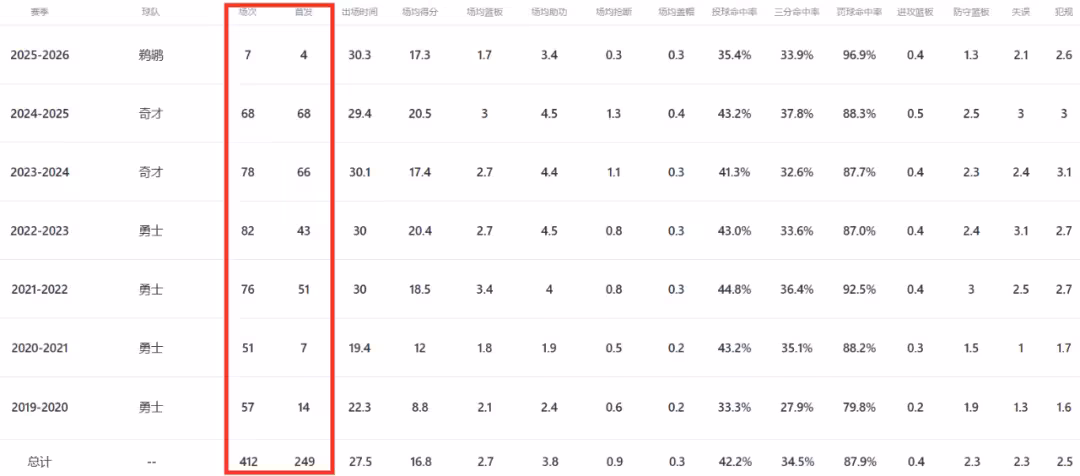 估計鵜鶘風水真的有問題,加盟他們之前,普爾每個賽季出勤率都挺高的,如下: