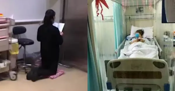 百善孝為先,女子淩晨4點手捧經文,跪在ICU門前為手術的母親祈福,拍攝者不忍心送上水:她已經跪了8小時